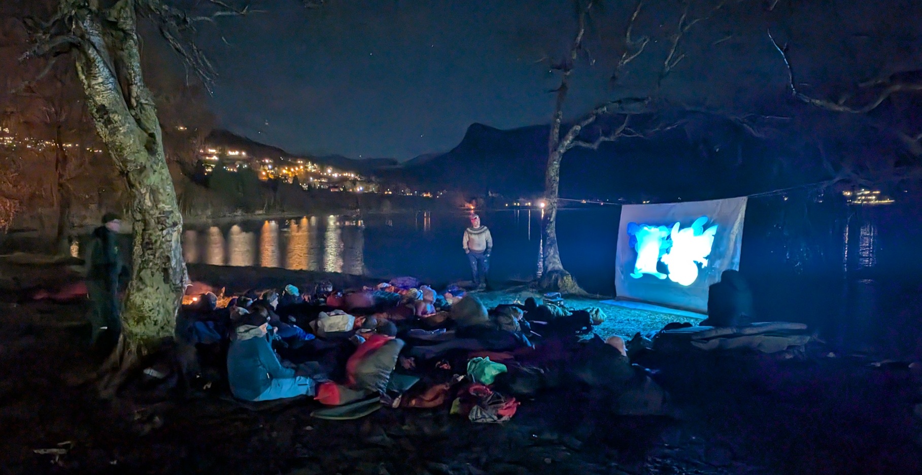 Så fekk vi testa ut dette i praksis med utekino under stjernene – på Årneset, der gradestokken hadde krypt ned til null. Ein kjekk kveld utanom det vanlege, med gode smil og varme både i kropp og sinn!